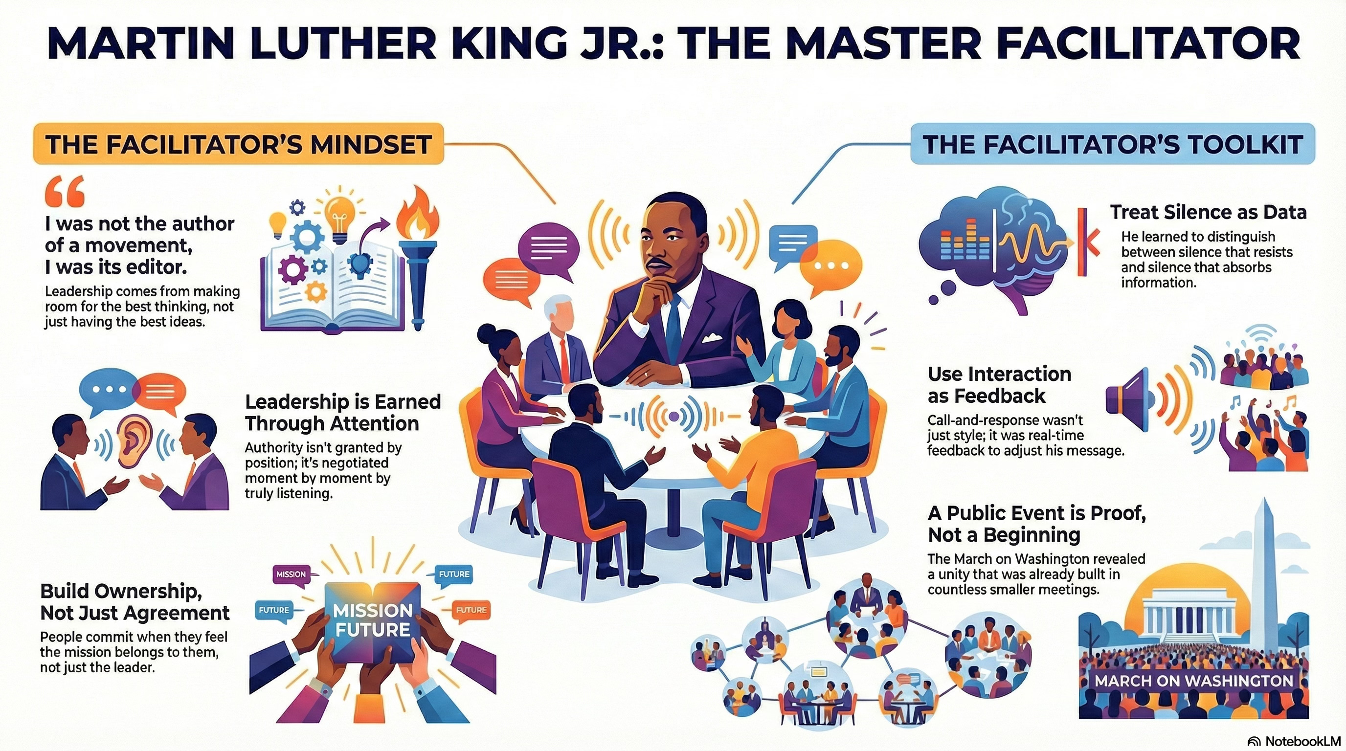 Watching King through this lens—as a facilitator rather than a monument—changes how his leadership reads. The reenactment video that accompanies this story takes a deliberate risk. It imagines what King’s method might sound like if he were speaking not to a march, but to today’s leaders, organizers, and event professionals—people whose work still depends on rooms, participation, and collective choice. The point is not to recreate a historical speech. It is to translate a method. King’s power did not reside only in his words. It resided in his understanding of how people come to move together.
