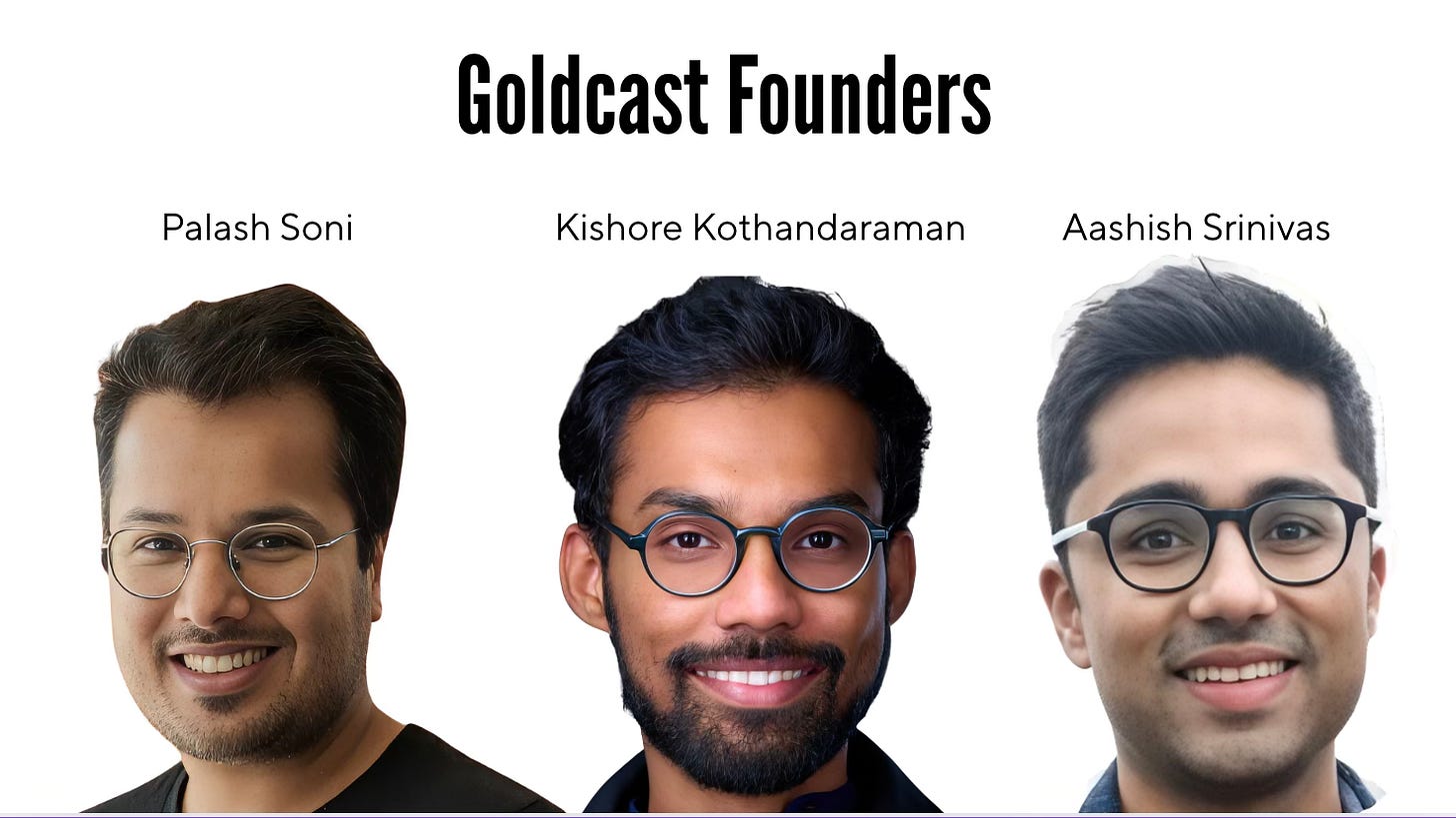 Goldcast was founded in 2020 by Palash Soni, Kishore Kothandaraman, and Aashish Srinivas, in the middle of the pandemic’s virtual-event bonanza, when companies were suddenly producing massive volumes of webinars and digital conferences — and watching most of that effort disappear the moment the stream ended. Goldcast’s distinction was that it didn’t treat virtual events as destinations. It treated them as inputs, capturing live sessions, breaking them into usable video segments, and feeding those assets directly into marketing, sales, and internal workflows so the event could keep working long after it was over.