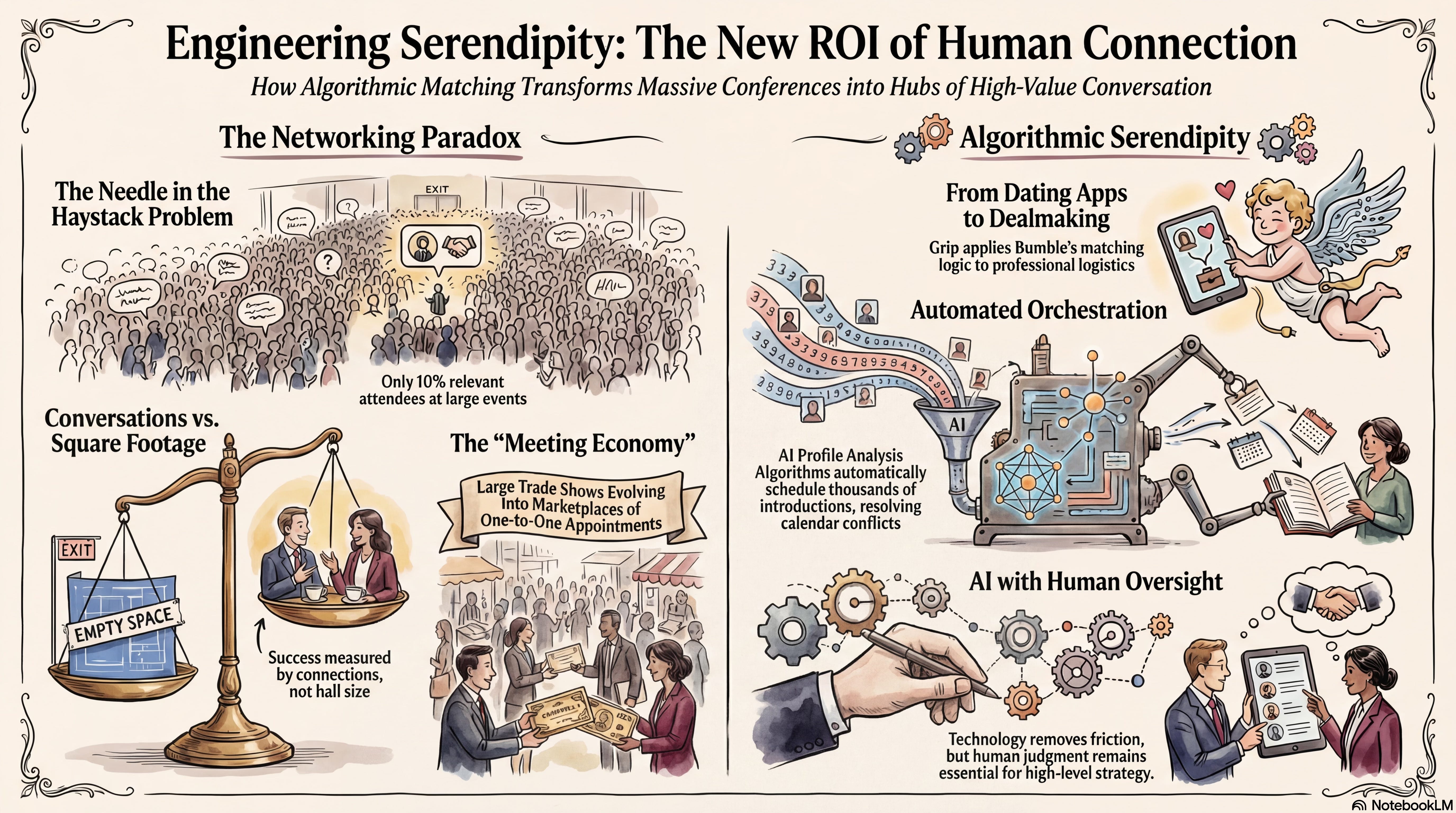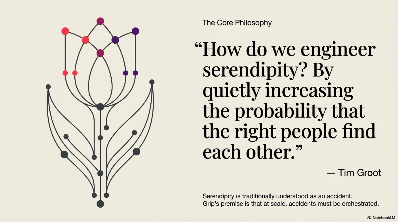 The phrase captures the ambition behind the company’s technology. Serendipity is traditionally understood as something accidental—two people bump into each other in a hallway and discover a shared interest. But large conferences make those accidental encounters harder, not easier. When thousands of participants fill a convention center, the odds of meeting the right person randomly actually decrease. Grip’s systems attempt to solve that paradox by quietly increasing the probability that the right people find each other.