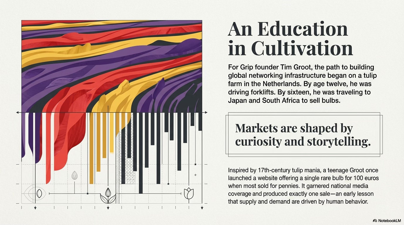 The experience exposed him early to the rhythms of global commerce. Tulips are beautiful, but they are also products that must be grown, marketed, and sold in a competitive international market. His grandfather had started the family business, and discussions about varieties, supply chains, and pricing were part of daily life. Looking back, Groot often describes those years as his first education in entrepreneurship.