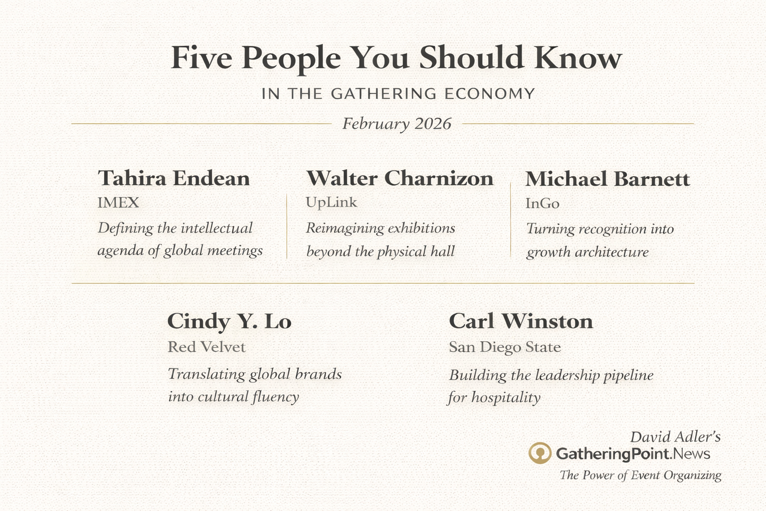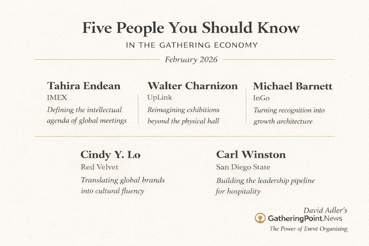 February 2026- Five People Shaping the Gathering Economy