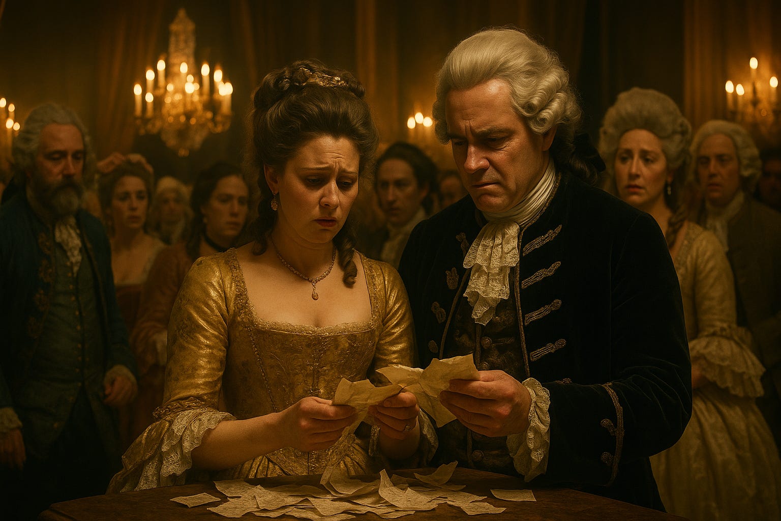 The Promise: A Parisian frenzy of wealth driven by the Mississippi Company. Stock values soared. Lavish parties celebrated the wealth boom.
