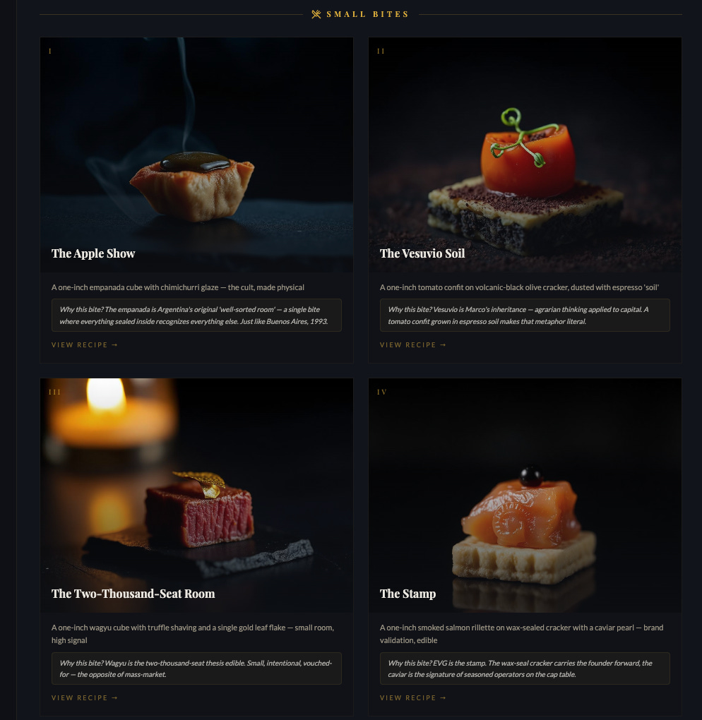 This was the house Marco Giberti grew up in. When Marco eventually picked a field of his own, not his father’s medical and academic passion but the business of gathering, he brought both sets of instincts with him. He writes books, he teaches a masterclass, he drafts institutions the industry had somehow never built itself. The name of his venture firm, Vesuvio, after the volcanic soil that fertilizes the Gulf of Naples, is no accident. It is an agrarian metaphor deployed on the floors of trade shows. The soil is rich, the founders flourish, the fund is the fertilizer. Her mother Vanda would have recognized the frame immediately.