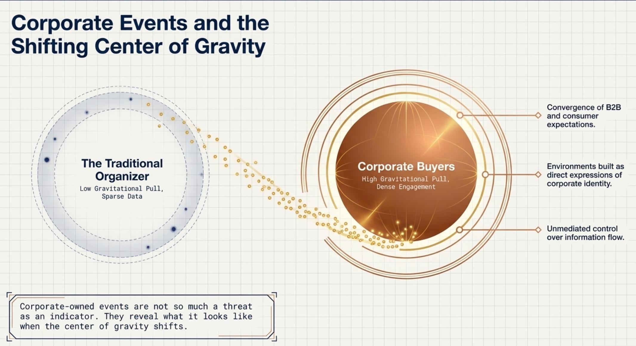 In that sense, corporate-owned events are not so much a threat as an indicator. They are what happens when organizations decide to control their own information flow, to build environments that align directly with their customers without mediation. They are not replacing the industry. They are revealing what it looks like when the center of gravity shifts.