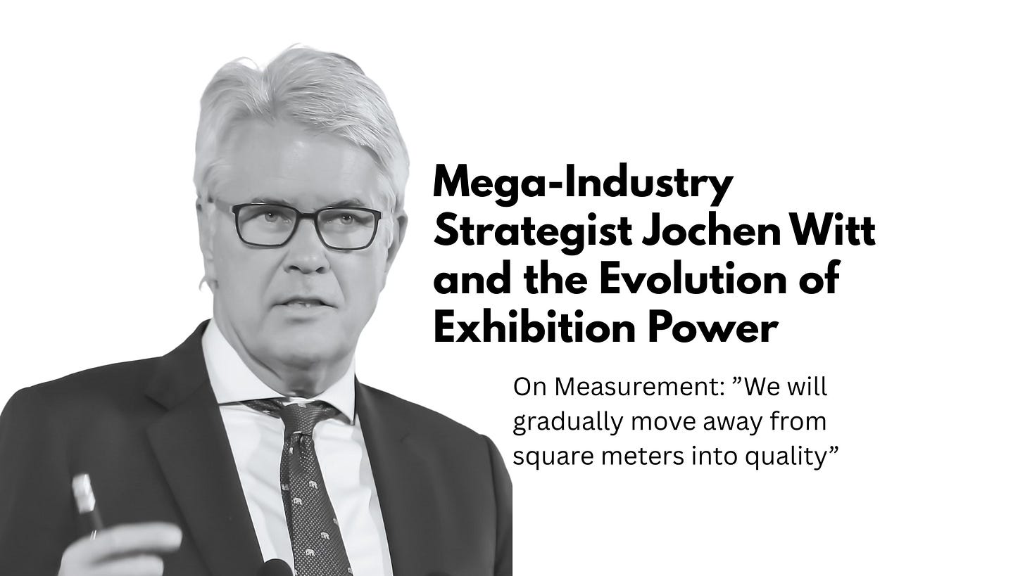 After decades defining how the world measures trade fairs, Witt argues the next era will be driven less by square meters and more by vertical density, regional power, and the quality of interaction.