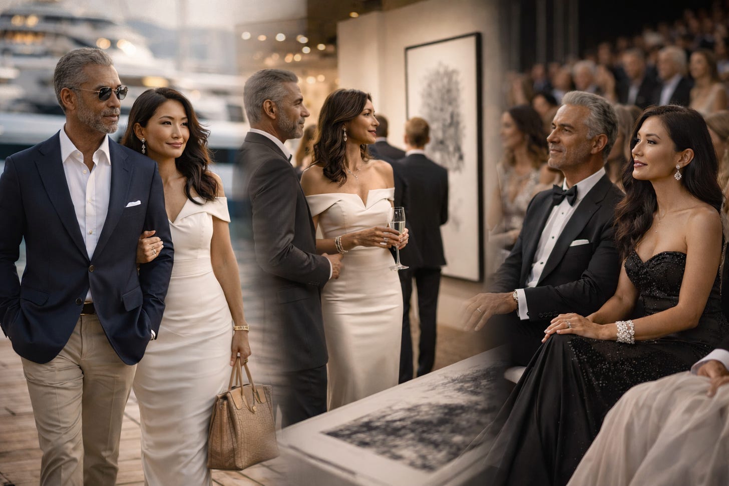 The experience of the .0001 percent does not announce itself. It unfolds in rooms that feel slightly slower than the world outside them, rooms where access is assumed rather than granted and where identity is recalibrated in public without anyone admitting that this is what is happening. At dawn in Monaco, the hulls of superyachts rise against the harbor like white embassies temporarily at sea; it is not hard to imagine the same vessel serving as boardroom, fortress, and floating confession booth depending on the hour. In Basel, collectors move through the preview hour at Art Basel with the composure of people accustomed to deciding quickly when it counts. By evening in Paris, during the official Haute Couture Week calendar, salon doors close on fittings that will never be replicated at retail; the garment is not “a look,” it is a private referendum on taste and lineage.