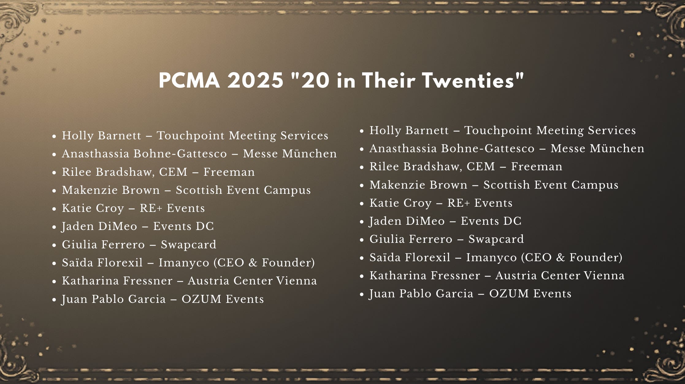 It was announced yesterday, with the polished confidence PCMA brings to these moments, that the organization has selected its “20 in Their Twenties” Class of 2026. On its surface, it appeared to be the familiar ritual of spotlighting emerging talent just ahead of Convening Leaders. Yet the timing—and the composition of the list—landed with an unexpected charge. It became clear almost immediately that this was not simply another cohort being introduced to the industry, but a revealing snapshot of how profoundly the business-events profession has been rewired since the last class chosen before the pandemic.