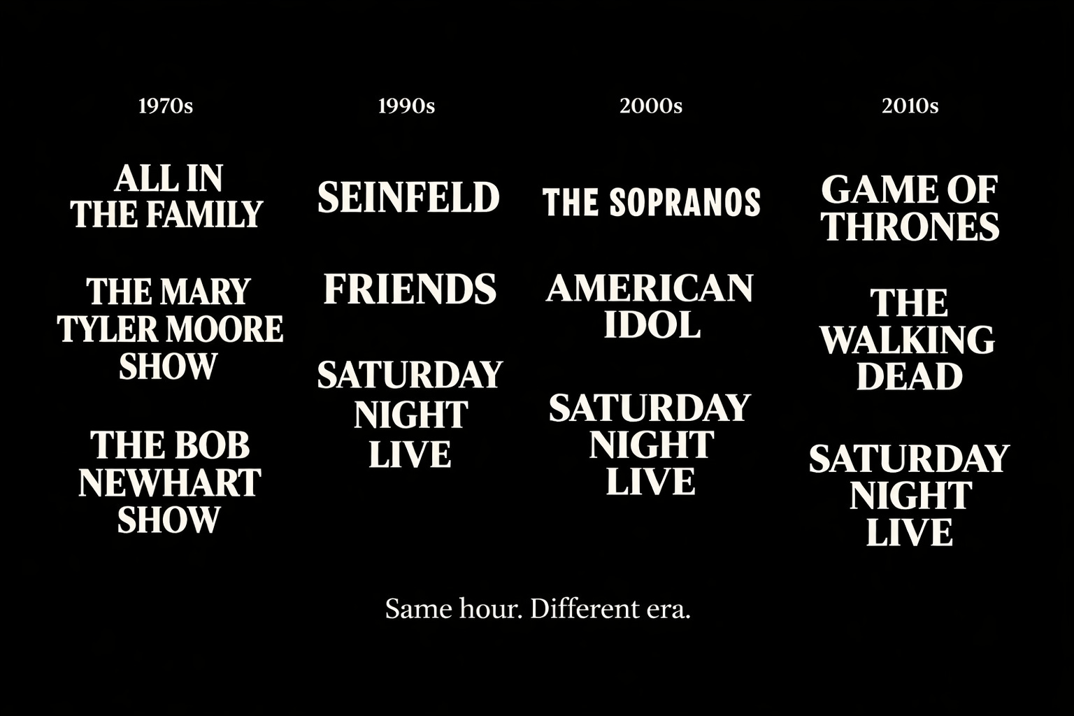 Saturday night on CBS had its own gravity: All in the Family was there, The Mary Tyler Moore Show was there, The Bob Newhart Show was there — not because we were analyzing a menu of entertainment choices, but because the menu didn’t exist. You showed up where the culture already was. You didn’t decide each week whether it was worth it. You resumed.